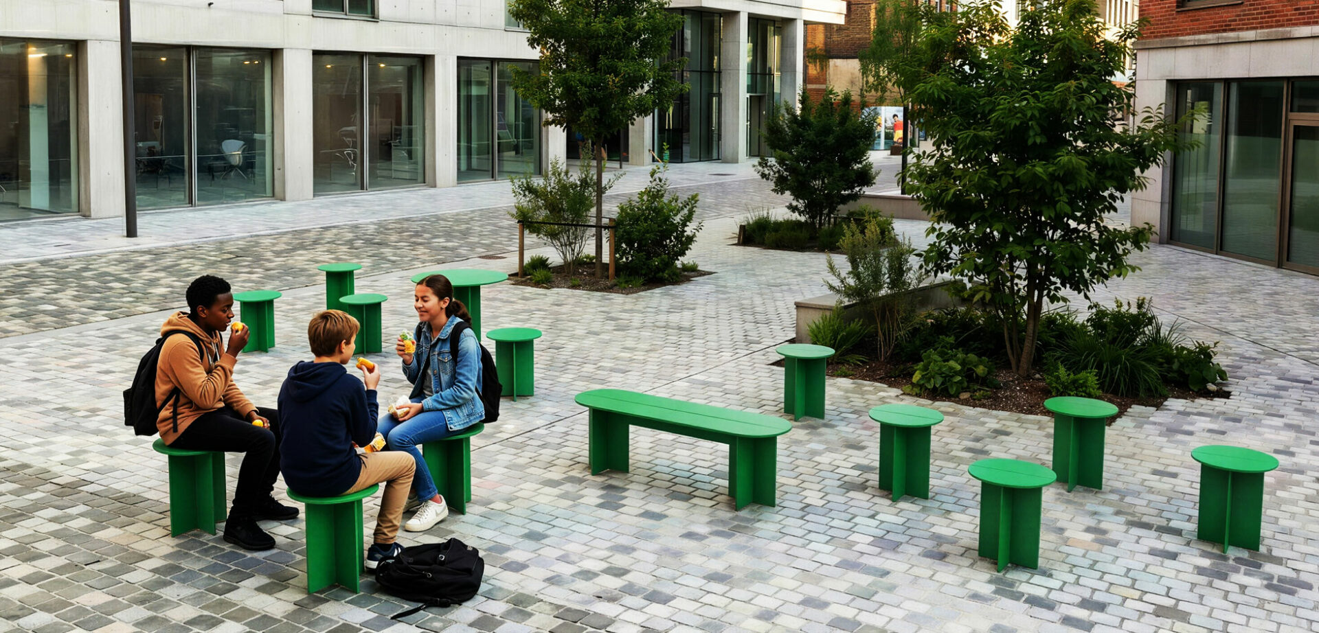 Banquette 2 places. En acier 100% recyclable. La collection Elements propose des mobiliers simples, à assembler in situ par vissage. Fixation au sol en 8 points ou par scellement sur demande.